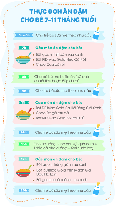 Thực đơn ăn dặm trong giai đoạn 7 – 11 tháng tuổi