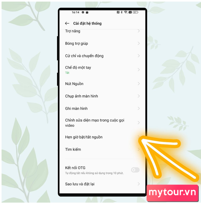 Không cần áp dụng trực tiếp nút nguồn物 lý bên hông, bạn hoàn toàn có thể sử dụng tính năng bật/tắt có sẵn trên điện thoại Oppo. Đây là cách tắt nguồn không cần chạm vào nút nguồn mà ít người biết đến. Tận dụng chế độ bật/tắt, bạn có thể lập lịch thời gian bật hoặc tắt nguồn dễ dàng mà không cần chạm đến nút nguồn.