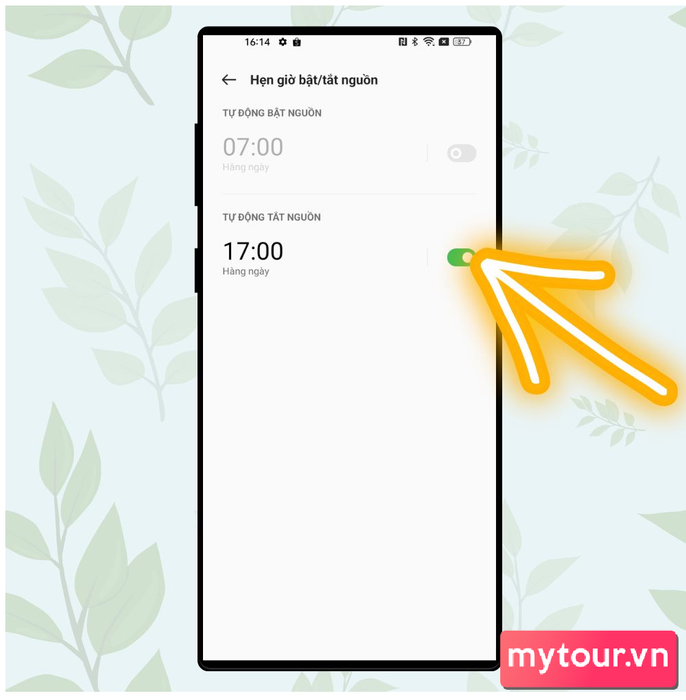 Sau khi cài đặt, điện thoại sẽ tự động bật/tắt nguồn theo thời gian bạn đã đặt trước đó.