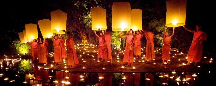Tết Trung thu ở Thái Lan được gọi là “Lễ hội cầu trăng”. Dưới ảnh hưởng của văn hóa Trung Quốc, người dân Thái có thể dễ dàng tìm thấy bánh trung thu và các vật phẩm thờ cúng khắp nơi, đặc biệt là tại Bangkok. Rằm tháng Tám là dịp sum họp gia đình, tổ chức lễ cúng trăng và các nghi lễ thờ cúng khác như làm cổng tò vò bằng đường mía.