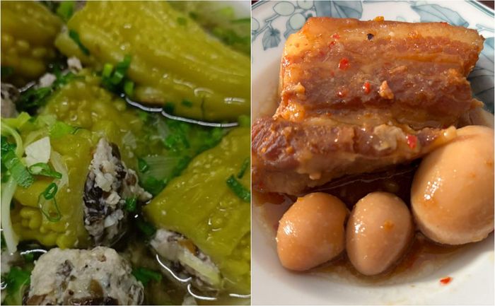 Trong bữa cơm ngày 30 hàng tháng của gia đình tôi, luôn có hai món đặc trưng là thịt kho trứng vịt và canh khổ qua. Cả nhà tôi đều thích hai món này ngày thường.Trong ngày Tết, món thịt kho trứng vịt tượng trưng cho sự ấm áp và hạnh phúc. Sự kết hợp giữa thịt và trứng vịt biểu hiện sự hoà mình trong gia đình.Còn canh khổ qua, âm vang từ tên gọi nói lên sự vượt qua khó khăn. Những trở ngại trong quá khứ nên để lại và chúng ta hãy đón nhận những điều tốt đẹp trong năm mới.Trước khi chào đón năm mớiGạo đầy niềm vui - Nước đầy hạnh phúcTầm này, hũ gạo ở nhà đã được lấp đầy từ vài ngày trước. Tối nay, các hũ nước trong nhà cũng sẽ được đổ đầy. Đây là truyền thống lâu đời của gia đình tôi, mong muốn một năm mới đầy đủ, ấm áp và không thiếu thốn.Bùa dựng nêu - Phong tục truyền thống