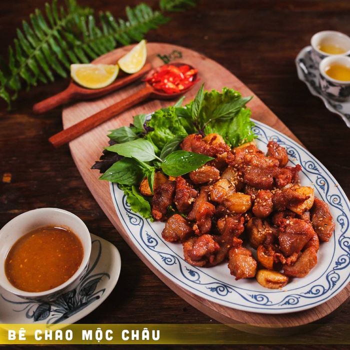 - Bê chao Mộc Châu: Một món ăn khó cưỡng, thịt bê sau khi ướp gia vị thấm đều, được chao qua dầu nóng. Thịt giòn rụm bên ngoài, ngọt mềm bên trong làm say đắm thực khách.