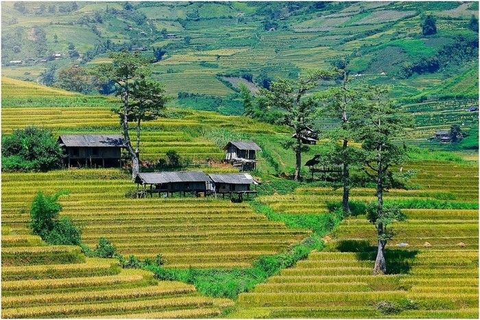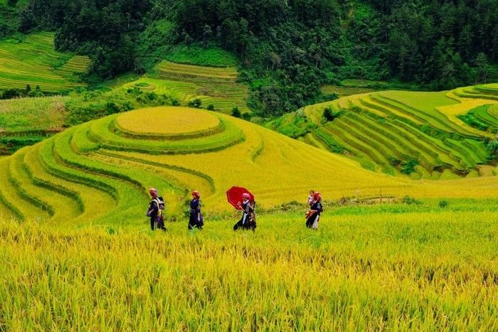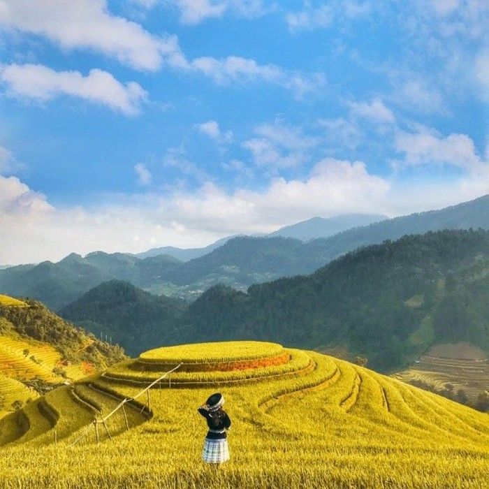 – Vào tháng 9, lúc sóng lúa bậc thang Mù Cang Chải chuyển sang màu vàng, tô điểm cho cảnh sắc của núi đồi như bức tranh thu sơn cước. Lễ hội mùa lúa tại đây càng làm cho vùng này trở nên sống động hơn, nơi được đánh giá là có những thửa ruộng bậc thang đẹp nhất cả nước.