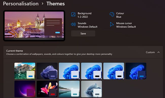 Bước 3: Chọn Tuỳ chỉnh để xem các giao diện mặc định có sẵn trong Windows 11.