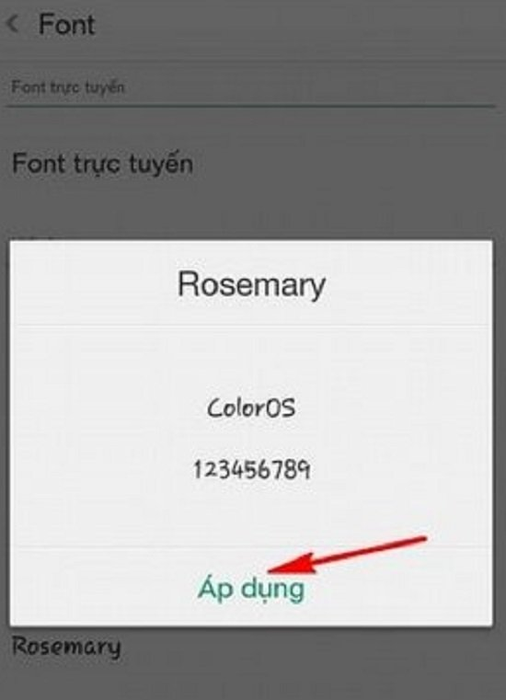 Bạn click vào “Cài đặt” để tải phông chữ về điện thoại.Bước 6: Sau khi tải xuống thành công, bạn chỉ cần chọn mục “Font mặc định”, chọn phông chữ mới và nhấn “Áp dụng” để thay đổi.