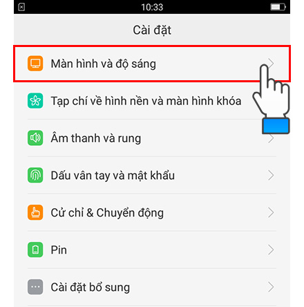 Bước 1: Truy cập phần “Cài đặt” trên giao diện chính, chọn “Màn hình và độ sáng”.