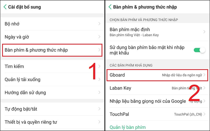 Chọn vào mục “Cài đặt bổ sung” trong phần “Cài đặt” của điện thoại.Bước 2: Bạn chạm vào “Bàn phím và phương thức nhập” sau đó bấm vào loại bàn phím bạn đang sử dụng.