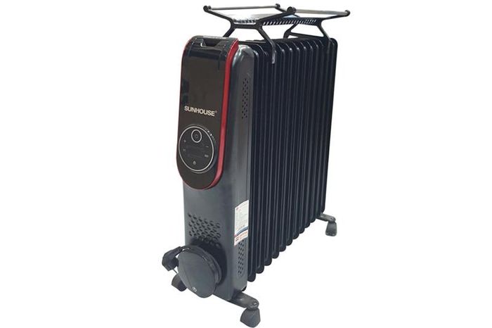The SUNHOUSE SHD7085 Oil Heater heats large spaces efficiently, includes an energy-saving ECO mode, and features adjustable temperature controls and a 24-hour timer. It also has a clothes drying rack and ensures a safe, cozy environment for children.