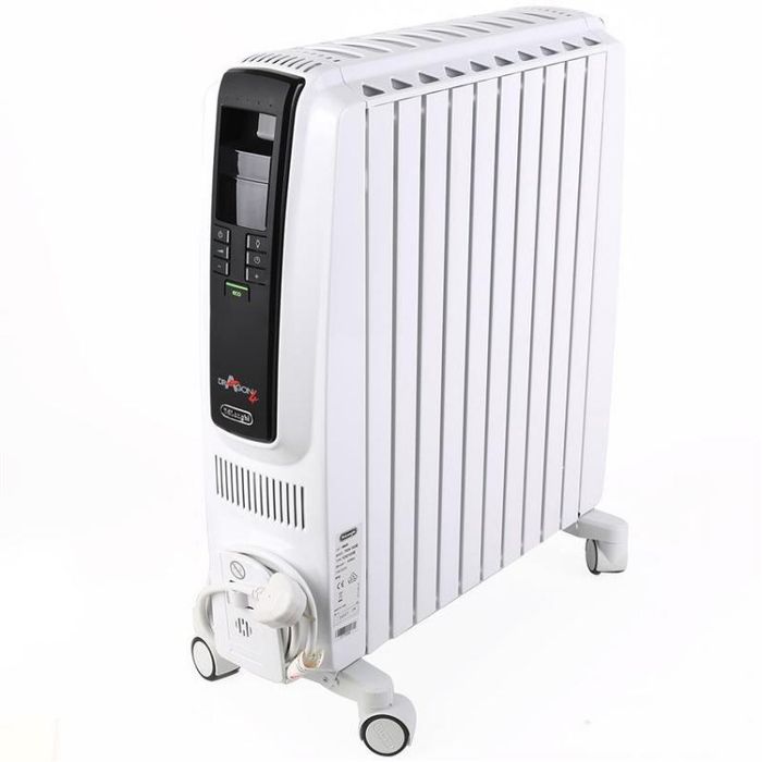 The Delonghi TRRS1225 Oil Heater is highly efficient with 12 large heating elements and a power output of 2500W, making it suitable for rooms of 20-30m2. It heats quickly and ensures consistent warmth.