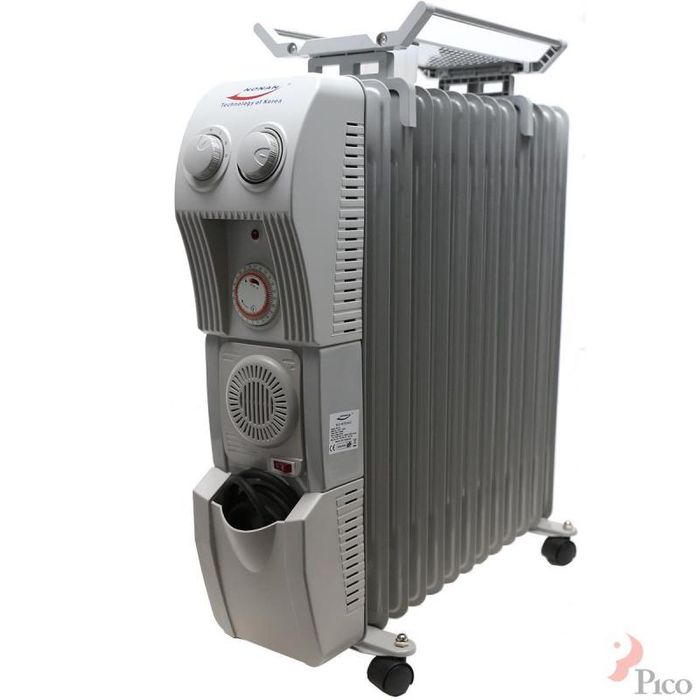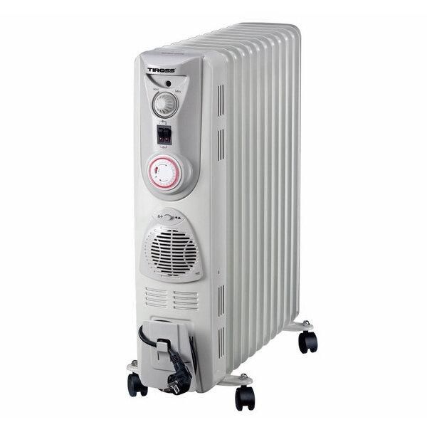 The Tiross TS920 Oil Heater offers rapid heating with a 2500W power output, a built-in fan, a drying rack, and a safety feature that turns off the heater if tipped over. It's ideal for family use, especially in winter.