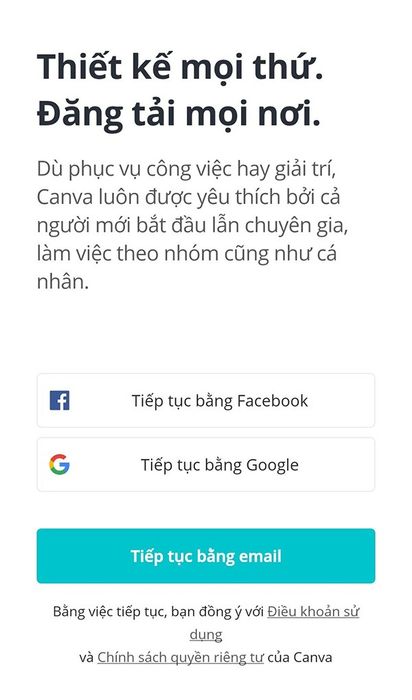 Quá trình đăng ký và đăng nhập Canva trên điện thoại tương tự như trên máy tính, bạn có thể tham khảo chi tiết ở phần trước.