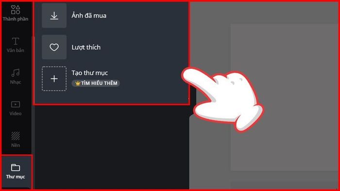 Cũng trên Canva, bạn có thể sử dụng mục Tạo thư mục để sắp xếp và lưu trữ hình ảnh đã mua hoặc những ảnh liên quan.