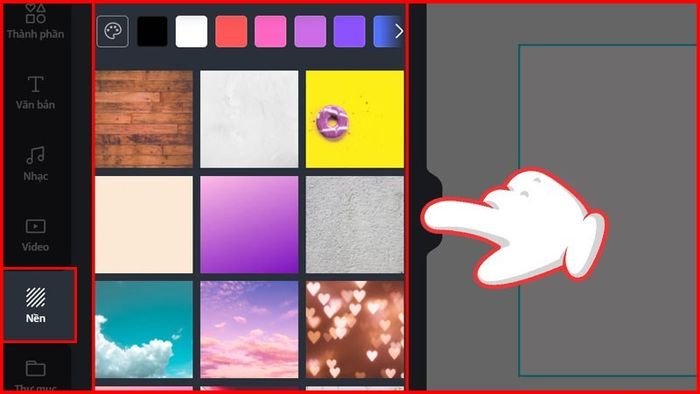 Bước 6: Để thêm nền cho thiết kế, chọn Nền và lựa chọn tấm hình ưa thích.