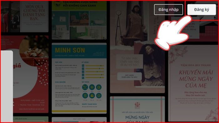 Bước 1: Truy cập trang Canva và chọn Đăng Ký (góc trên cùng bên trái trình duyệt).