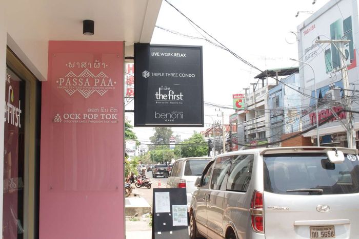 Rời khỏi Her works, chúng mình đến khu chung cư Triple Three gần khu chợ sáng của thành phố. Cửa hàng nằm ở tầng một của khu chung cư. Đây là sự kết hợp giữa hai thương hiệu địa phương Passa Paa và Ock Pop Tok.