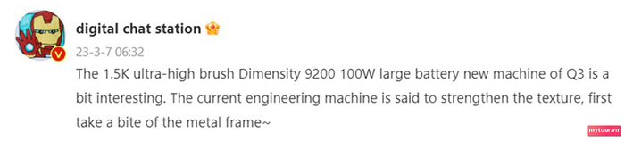 - - Xiaomi dự kiến ra mắt Redmi K60 Ultra vào quý 3 năm nay, kế nhiệm Redmi K50 Ultra.