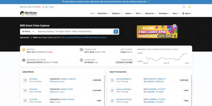 BNB Chain gặp sự cố ngừng tạo block trong 4 tiếngTrên BSCScan, có thông báo cho biết rằng dữ liệu block không được cập nhật theo thời gian thực do lượng giao dịch quá lớn. Khối cuối cùng được tạo có số kí hiệu 34136244 - diễn ra cách đây 4 tiếng.