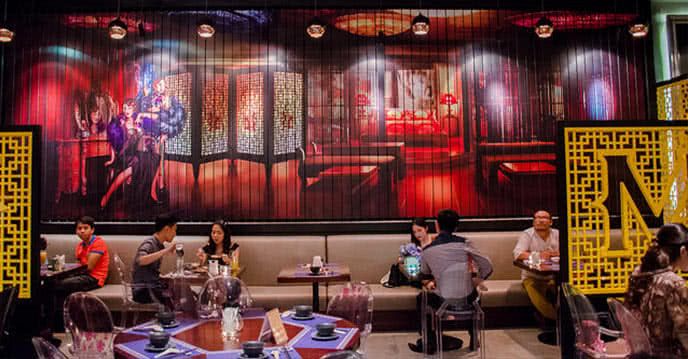 Mỗi góc của nhà hàng đều mang những đặc điểm độc đáo khác nhau. Với phong cách đương đại độc đáo, được kết hợp hoàn hảo giữa những đặc trưng của nhiều quốc gia khác nhau như chiếc dù múa Maigasa của Nhật Bản, bông anh đào rực rỡ, bức họa cô gái Trung Hoa huyền bí cộng thêm chút sắc vàng truyền thống của đất nước Thái Lan trên những vách gỗ. Tất cả có vẻ không liên quan tới nhau nhưng lại tạo nên một tổng thể độc đáo khiến người ta ngỡ ngàng.