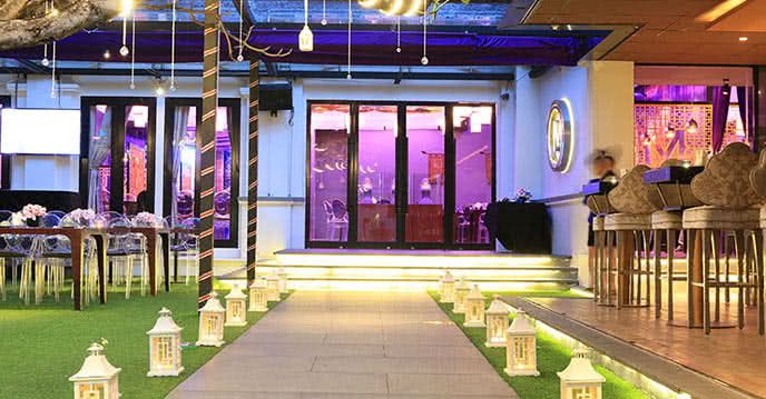 Khi bước vào Mama Restaurant, bạn sẽ mê mẩn với vẻ đẹp của thảm cỏ nhân tạo xanh mướt bao quanh. Lối vào của nhà hàng đầy màu xanh mát, với cỏ trang trí trên tường và lót nguyên một sảnh lớn, tạo nên không gian sang trọng. Thực khách có thể thưởng thức các loại cocktail tại không gian Louge bar xanh mát ngoài trời như vậy.