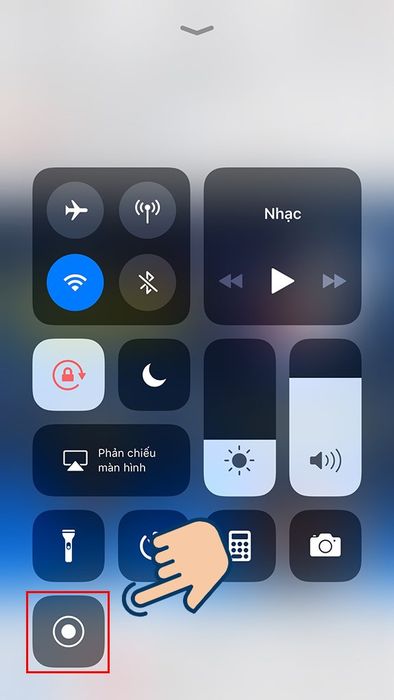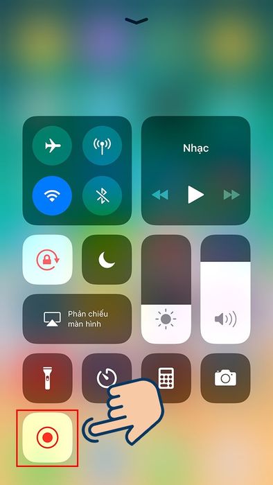 Bước 6: Sau đó, vuốt từ dưới màn hình lên để mở Trung tâm kiểm soát, và giữ biểu tượng Ghi màn hình mà bạn vừa thêm.