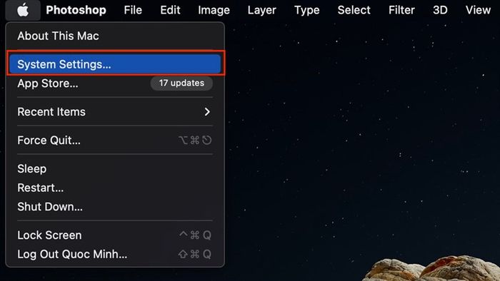 Bước 1: Đầu tiên, để tắt chế độ Sleep tự động trên MacBook, hãy click vào biểu tượng quả táo ở góc trái màn hình > sau đó chọn System Setting để mở cài đặt hệ thống.