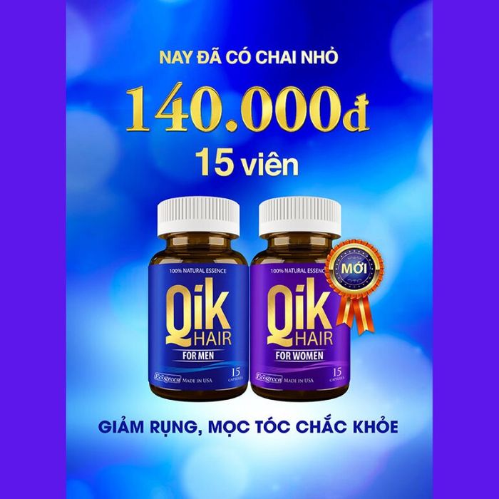 Giá của Qik Hair dao động từ 140,000 đến 300,000 đồng/lọ tùy theo số lượng viên và dành cho nam hoặc nữ.