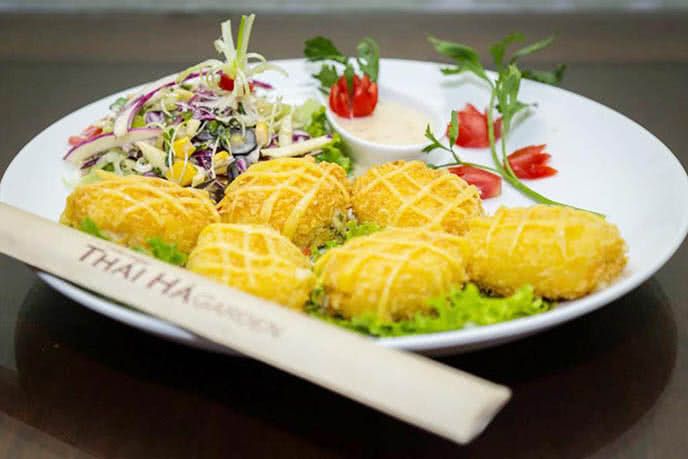 Những món ngon khỏi bàn ở Cù Kỳ Garden, đặc biệt là cơm rang cù kỳ, miến xào cù kỳ (75k) hoặc Bánh Korokke cù kỳ (88k). Đặc sắc đến từ món bánh korokke, siêu ngon và sáng tạo, thử một lần là nghiện ngay!