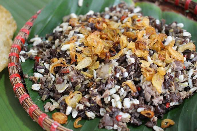 Nếu bạn đến đây, hãy nhớ thử các món côn trùng như ve sầu, bọ xít rang lá chanh,… với giá chỉ 75k/mẹt thôi nhé!