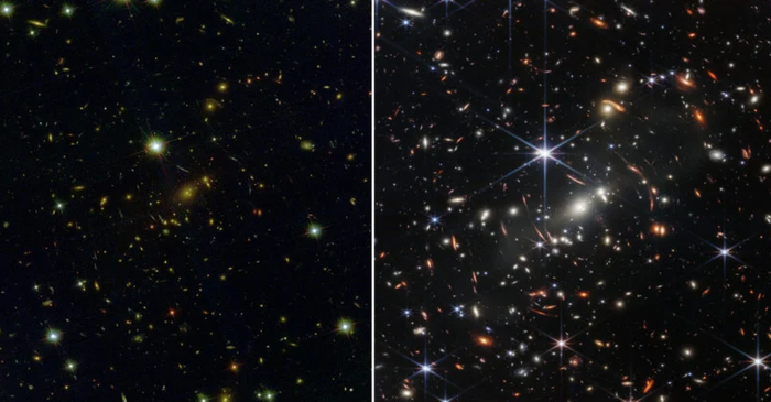 On the left, the Hubble Telescope’s image. On the right, the JWST’s image: Credit: ESA/NASA/STSCITại sao JWST đánh dấu kỷ nguyên mới trong thiên văn học