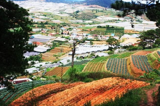 Khác biệt với ruộng bậc thang ở vùng Tây Bắc, nơi có những cánh đồng lúa trải dài, màu xanh tươi của mạ non hay màu vàng rực rỡ của lúa chín, thì ở Đà Lạt, nét đặc trưng của thửa ruộng bậc thang là sự xanh rì của những loại rau quả độc đáo nơi đây.