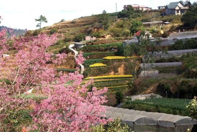 Hầu hết những thửa ruộng bậc thang ở Đà Lạt đều trồng đủ loại rau quả, xen kẽ với một số loại hoa. Sắc vàng óng ảnh lung linh của hoa nổi bật trên nền xanh của rau, tạo nên bức tranh thiên nhiên tuyệt vời, đủ sức làm xiêu lòng mọi du khách.
