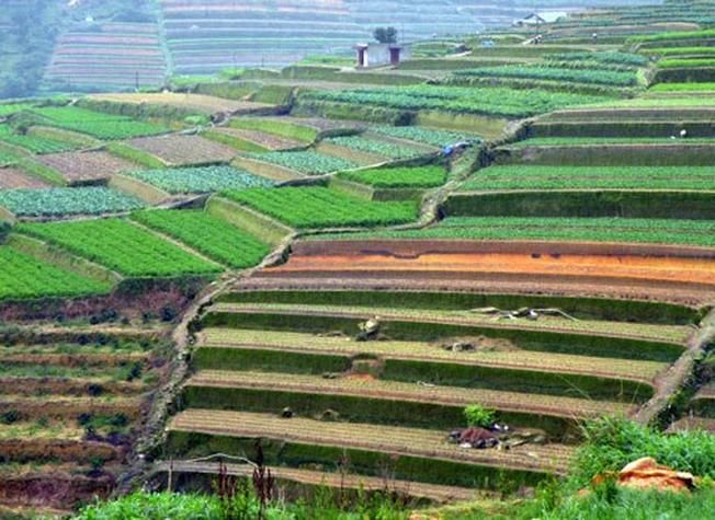 Ruộng bậc thang tô điểm xanh tươi với đủ loại rau quả