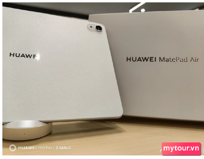 Nhìn vào những hình ảnh được Tech Wizard chia sẻ, MatePad Air có thiết kế thân máy bo tròn tinh tế, camera phía sau đi kèm đèn flash. Màu bạc sang trọng làm nổi bật logo 'HUAWEI' ở chính giữa mặt sau.