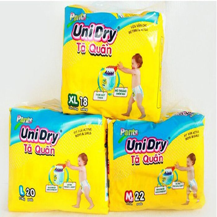 - Bỉm quần Unidry size XL 18 miếng cho trẻ từ 13kg: 83.000 VNĐ.