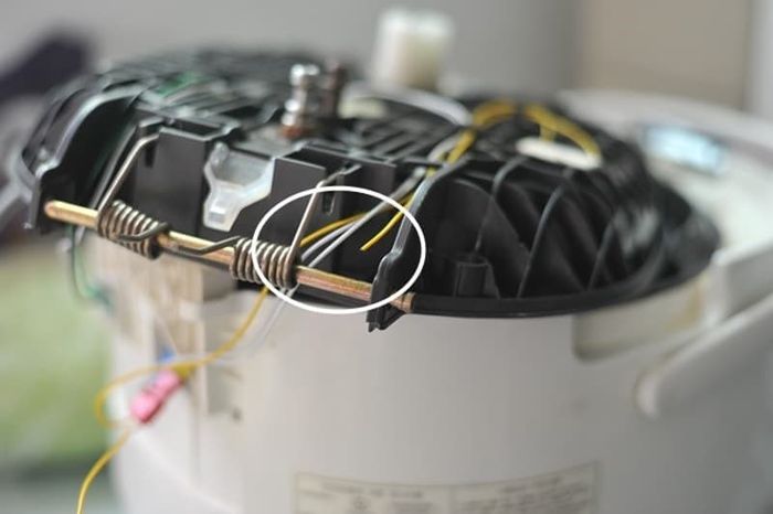Kiểm tra dây màu vàng cùng dây màu trắng kết nối từ khóa nắp đến mạch điều khiển ở thân nồi. Sử dụng kềm cắt để loại bỏ phần đầu bị đứt, tháo lớp nhựa bảo vệ ngoài và kết nối lại hai dây điện bị đứt. Tiếp theo, sử dụng băng keo cách điện để quấn lại.