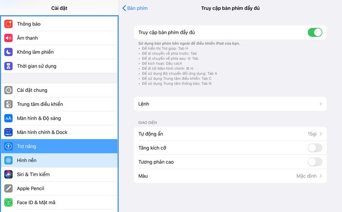 3. Tùy chỉnh sâu để điều khiển và tương tác với iPad chỉ bằng bàn phím