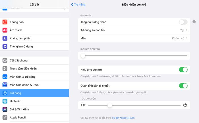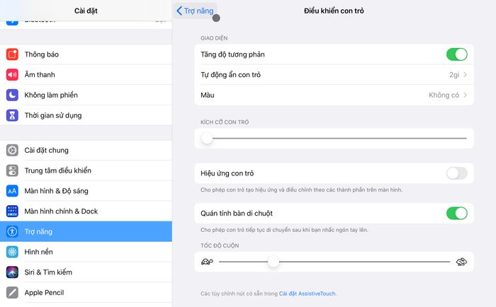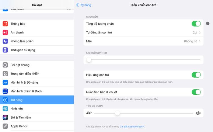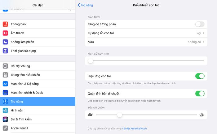 Hai mục cuối là hiệu ứng con trỏ tiếp tục di chuyển dù đã nhấc tay ra khỏi trackpad và tốc độ cuộn trang