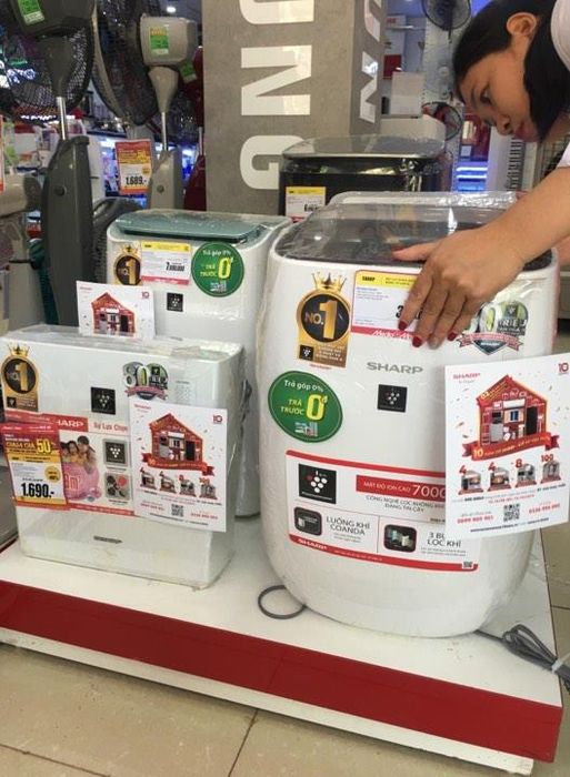 Tại siêu thị điện máy Nguyễn Kim 19 Nguyễn Chí Thanh, Hà Nội, thiết bị lọc không khí được nhiều người quan tâm. Ngoài các thương hiệu từ Nhật Bản, Hàn Quốc, hàng Trung Quốc cũng được nhiều người chú ý bởi giá cả phải chăng.