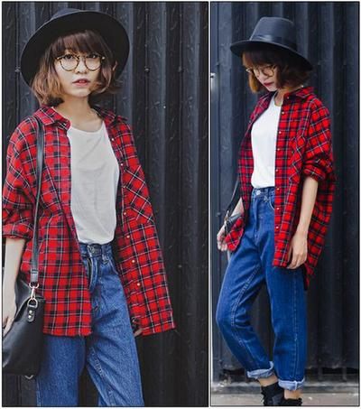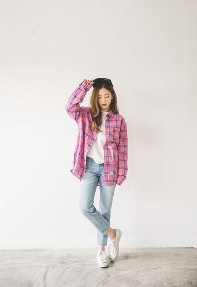 Không cần váy ngắn, áo thun kết hợp với sơ mi ca rô là lựa chọn tuyệt vời khi đi học. Bộ đôi này phản ánh phong cách năng động và thoải mái. Kết hợp áo thun và sơ mi ca rô không chỉ bảo vệ da dưới ánh nắng mặt trời mà còn rất thời trang. Hãy kết hợp chúng với quần jean và giày thể thao để tạo set đồ hoàn hảo.