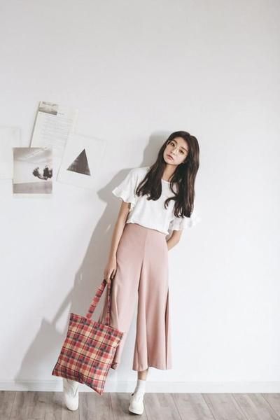 Giống như chân váy suông dài, quần culottes có khả năng che đi nhược điểm ở bụng và chân một cách tinh tế. Bạn có thể kết hợp quần này với áo thun hoặc sơ mi, tạo ra phong cách năng động và thoải mái khi đi học theo kiểu Hàn Quốc.