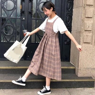 Váy yếm dài là lựa chọn tuyệt vời cho việc diện đi học. Chọn những chiếc váy với họa tiết ca rô dễ thương hoặc chất liệu jean bụi bặm. Để tạo sự hài hòa, hãy kết hợp với áo thun đơn giản. Giày thể thao sẽ là điểm nhấn làm set đồ trở nên đáng yêu và trẻ trung. Đây là một cách phối đồ theo phong cách Hàn mà bạn nên thử.