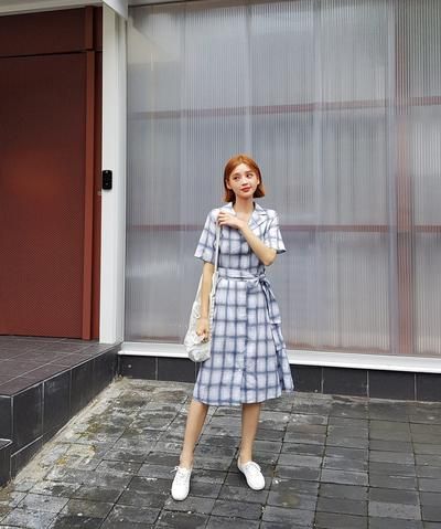 Váy kẻ ca rô là sự lựa chọn phổ biến của cô gái Hàn khi đi chơi hay đến lớp. Trong những ngày se lạnh, chiếc váy cổ cao kẻ ca rô sẽ làm bạn tự tin. Không chỉ giữ ấm, nó còn giúp bạn trông xinh xắn và đáng yêu như những cô gái Hàn Quốc.