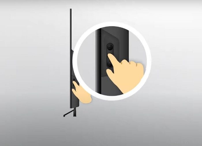 Một cách khắc phục nhanh chóng khi remote tivi Sony bị hỏng mà chưa kịp mua mới là bạn có thể bật tivi bằng nút nguồn ở trước màn hình hoặc ở phía trên, cạnh bên màn hình, như hình ảnh dưới đây: