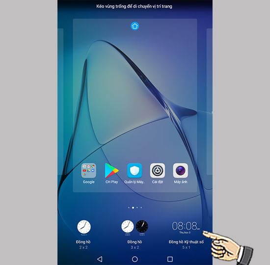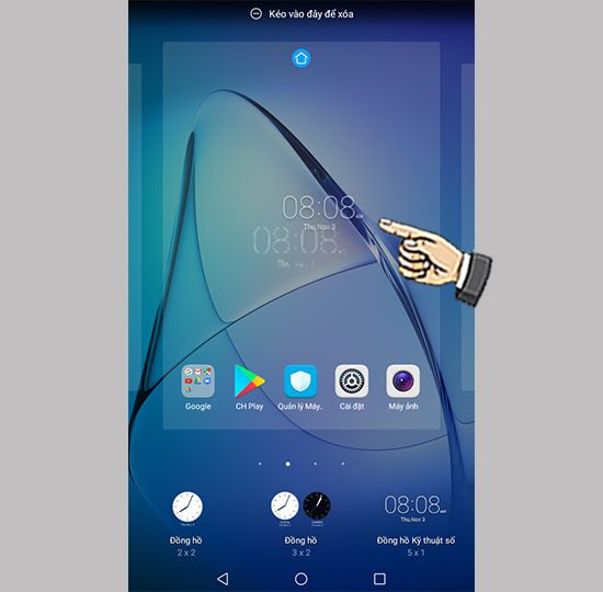 Bước 1: Giữ ngón tay lên một vùng trống bất kỳ trên màn hình chính.