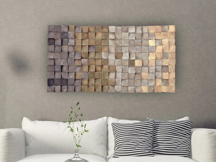 Một trong những cách chọn tranh treo phòng khách sang trọng là ưu tiên những tác phẩm làm từ pha lê, sứ hoặc áp dụng kỹ thuật in nổi. Bạn cũng có thể sắp xếp nhiều bức nhỏ cùng chủ đề, tone màu… thành một bức tranh lớn đầy nghệ thuật.