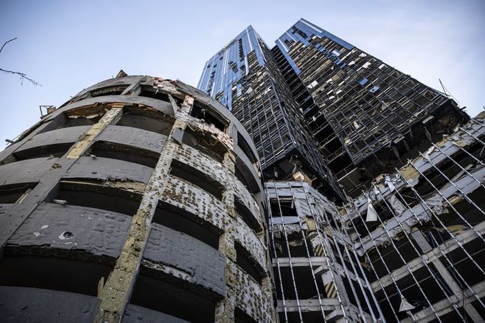 Góc của đại sứ quán Đức ở thủ đô Kyiv, Ukraine đã bị tàn phá do bom phát nổ từ phía Nga. Bức ảnh này được chụp vào ngày 11/10.