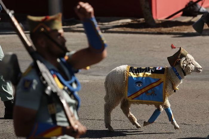 Một chú cừu tham gia lễ diễu hành trong ngày Lễ Quốc khánh Tây Ban Nha (Hispanic Day - 12/10) tại Madrid, Tây Ban Nha.