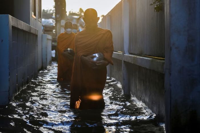 Các nhà sư ở Kon Kret, Nonthaburi, Thái Lan, đang trên đường đi khất thực vào ngày 12/10.