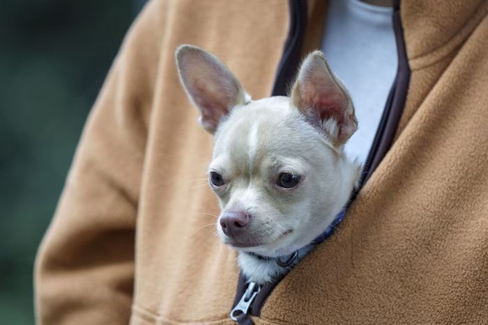 Một chú chó Chihuahua ngồi thoải mái trong lòng chủ nhân tại Dharamshala, Ấn Độ. Bức ảnh được chụp vào ngày 9/10.