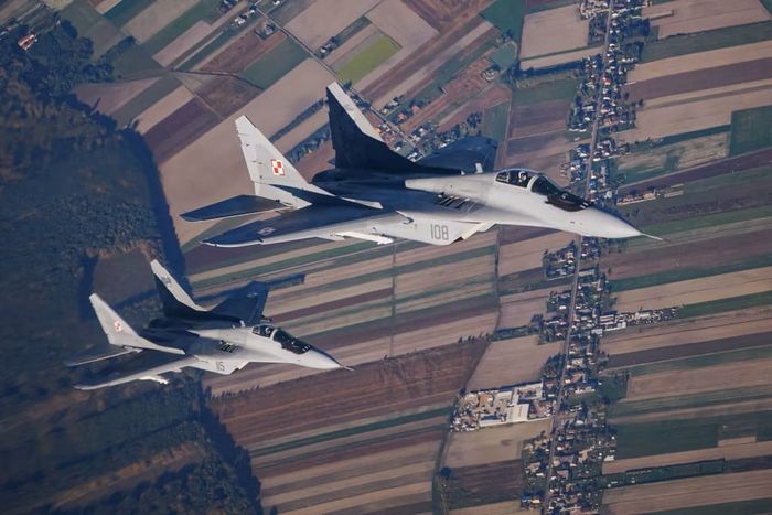 Hai máy bay chiến đấu MiG-29 tham gia tập trận phòng không chung của NATO tại căn cứ không quân Lask ở Ba Lan. Bức ảnh này được chụp vào ngày 12/10.